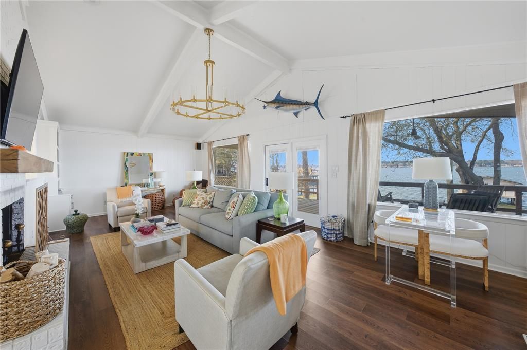 Enjoy incredible open-water living with 100 feet of shoreline and expansive, unobstructed lake views—truly a rare opportunity. Sunsets explode out over this deep water peninsula! Want year around boating and lake recreation? Look no further!This stylish and inviting home was completely gutted and recreated over the last few years and WOW! From the kitchen with commercial appliances to the warm wood tones and sleek nuetral finishes to the spa like glass and tile baths, this one is magazine worthy! It is suited for both peaceful retreats or entertaining on a larger scale. The main level offers 3 bedrooms plus a compact built in bunk room , 3baths, and a spacious game room with additional 4 bunks built along one wall, perfect for overflow guests. Downstairs, a private 1-bedroom, 1-bath efficiency-style guest suite. Outdoors, a large covered lakeside deck creates the perfect setting to relax and take in stunning sunset views beneath a canopy of mature trees. The well established expanse of rear lawn is bare foot perfect! This property captures the essence of lakeside living—comfortable, versatile, and unforgettable.Furniture package is available via separate negotiation and barely used since purchase after remodel!